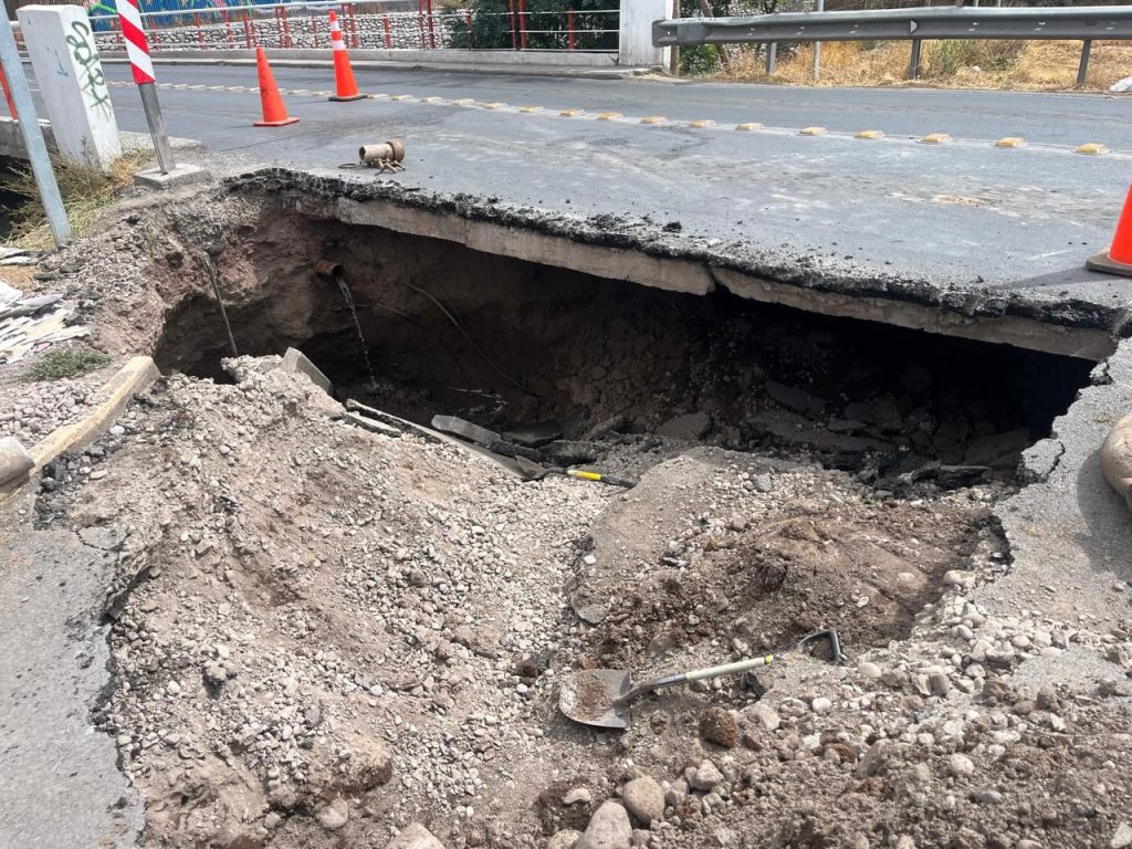 Se informa que actualmente se encuentra habilitada sólo una pista en la Ruta E-71, acceso norte Puente Encon, comuna de San Felipe, vía que une con la comuna de Putaendo, debido a una rotura de matriz que provocó un socavón bajo la calzada.