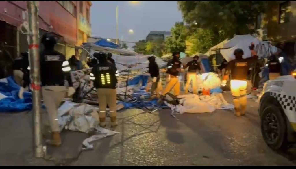 Carabineros y municipio de Santiago iniciaron tercera etapa de retiro de los toldos azules en el Barrios Meiggs