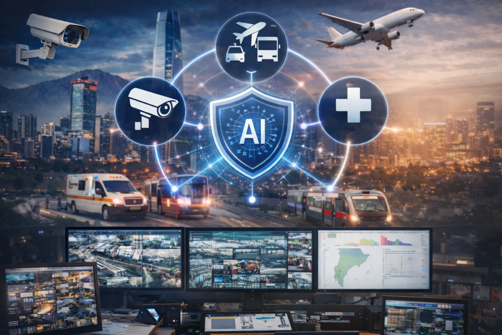El transporte aéreo es uno de los sectores donde esta necesidad se ha hecho más evidente. De acuerdo con cifras consolidadas de los operadores del Aeropuerto Arturo Merino Benítez, el principal terminal aéreo del país cerró 2025 con más de 26,5 millones de pasajeros movilizados, lo que exige altos niveles de coordinación entre seguridad, control de accesos, monitoreo de flujos y autoridades para asegurar operaciones seguras y eficientes.