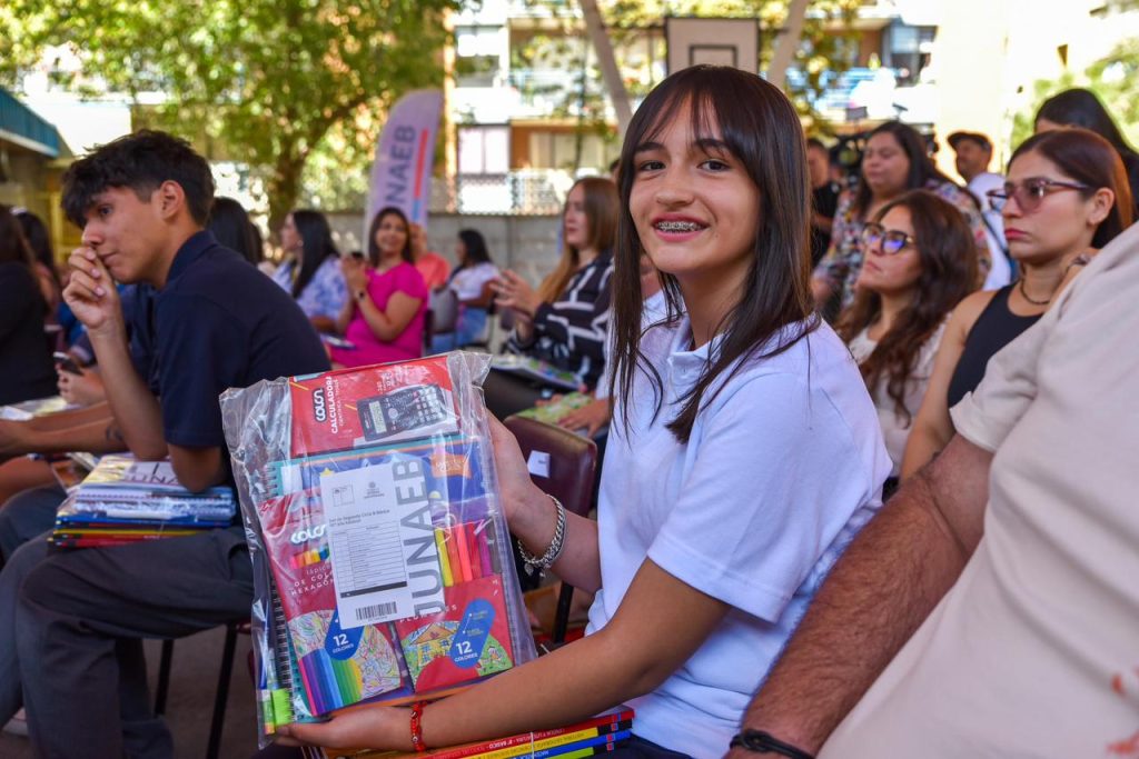 Durante la actividad, las y los estudiantes también recibieron los textos escolares que el Ministerio de Educación entrega anualmente y de manera gratuita a establecimientos públicos y particulares subvencionados del país, con el objetivo de promover la igualdad de acceso al conocimiento, los que están 100% alineados al Currículum Nacional vigente.