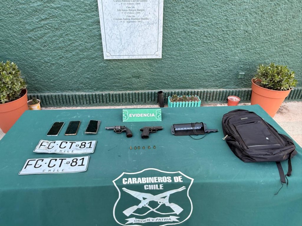 Los aprehendidos, uno de 31 años de nacionalidad peruana y uno chileno de 34 años, ambos con antecedentes previos por receptación de vehículo, conducción en estado de ebriedad, desórdenes y daños, fueron puestos a disposición de la fiscalía.
