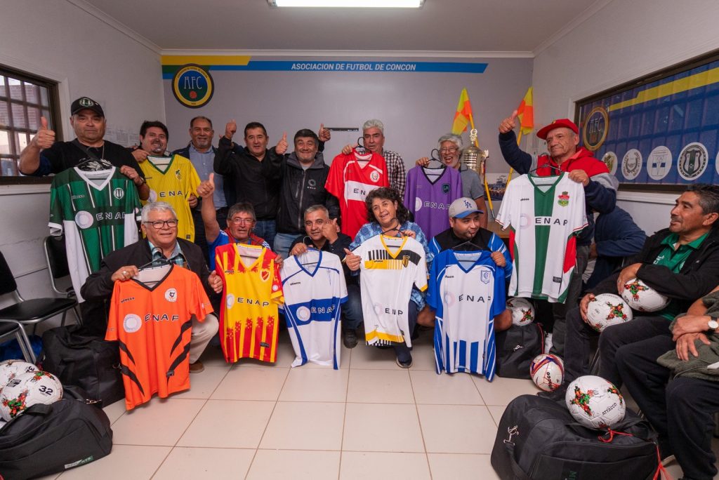 Desde hace siete años, Enap respalda a la Asociación de Fútbol de Concón, alianza gracias a la cual hoy beneficia directamente a 11 clubes y más de 6.300 jugadores. En ese marco, el viernes 20 de febrero, a través del programa Enap+Cerca, fueron entregadas nuevas camisetas, bolsos, balones y otros implementos deportivos destinados a los equipos que integran la organización.