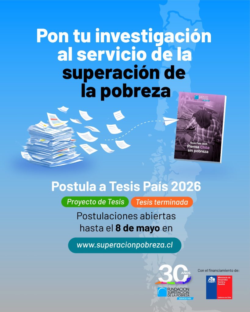 Postulaciones abiertas en:  https://www.superacionpobreza.cl/postulacion-tesis-pais