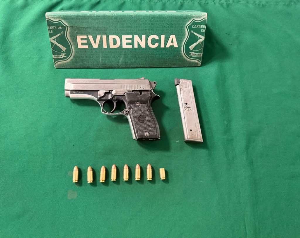 Con estos antecedentes y en el contexto de flagrancia, el personal policial se trasladó al lugar indicado, donde logró ubicar al presunto agresor fuera de su domicilio. Al efectuarle un control y registro, se le incautó una pistola marca Taurus, un cargador, siete cartuchos calibre 9 mm y un cartucho percutado. Por ello el individuo identificado como C.J.N.N., de 43 años fue detenido de inmediato.