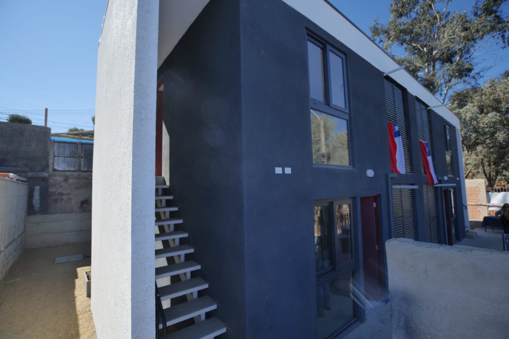 El proyecto contempló la construcción de un conjunto habitacional tipo cuatripareo, compuesto por cuatro viviendas de 54 metros cuadrados cada una. Para su edificación se utilizó un sistema constructivo de paneles, que destaca por su eficiencia térmica y estructural, sobre fundaciones de hormigón e incorporando soluciones orientadas a mejorar el confort interior.