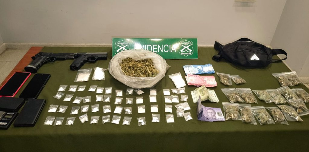 Al verificar el contenido del banano, se estableció que mantenía sustancias ilícitas de distintos tipos y dinero en efectivo, por lo que Carabineros fue tras sus pasos, ingresando hasta su domicilio en contexto de flagrancia, lugar donde el imputado ingresó para ocultarse.