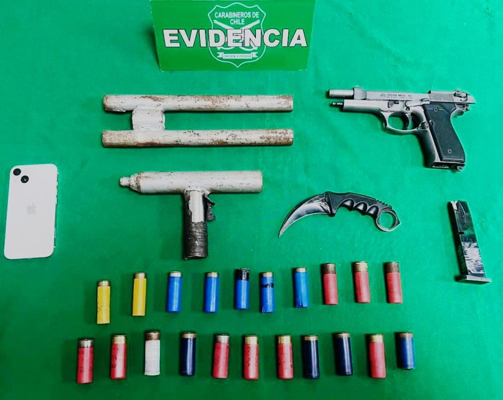 Tras realizar diligencias en el domicilio de uno de los imputados, y tras el ingreso voluntario del propietario, se recuperó el celular sustraído y se incautó una escopeta de fabricación artesanal (hechiza) con munición, una pistola a fogueo y un arma blanca. Ambos fueron puestos a disposición del Tribunal esta mañana.