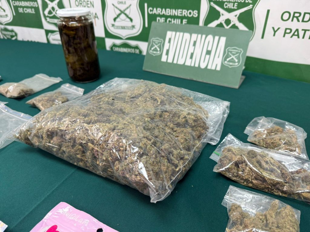 Logrando incautar casi tres kilos de marihuana, clorhidrato de cocaína, plantas de cannabis sativa y dos cajas de 20 unidades de fuegos de artificio, $ 557.000 en dinero en efectivo y especies asociadas al delito.