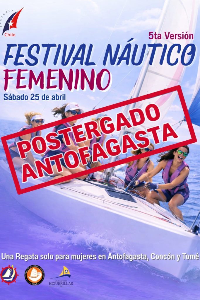 La actividad, enmarcada en el programa “Steering the Course” (Dirigiendo el Rumbo) de la World Sailing (Federación Internacional de Vela), que promueve la equidad de género a nivel global, se extenderá incluso más allá de este fin de semana, pues en las últimas horas se ha debido postergar el encuentro que estaba programado en el Club de Yates Antofagasta. Esto, a raíz de que la Armada de Chile dispuso la suspensión preventiva de zarpe de naves por condiciones de marejada que se extenderían hasta el domingo en el tramo comprendido entre Arica y Coquimbo. La nueva fecha será informada en los próximos días, dependiendo de la evolución del fenómeno meteorológico.
