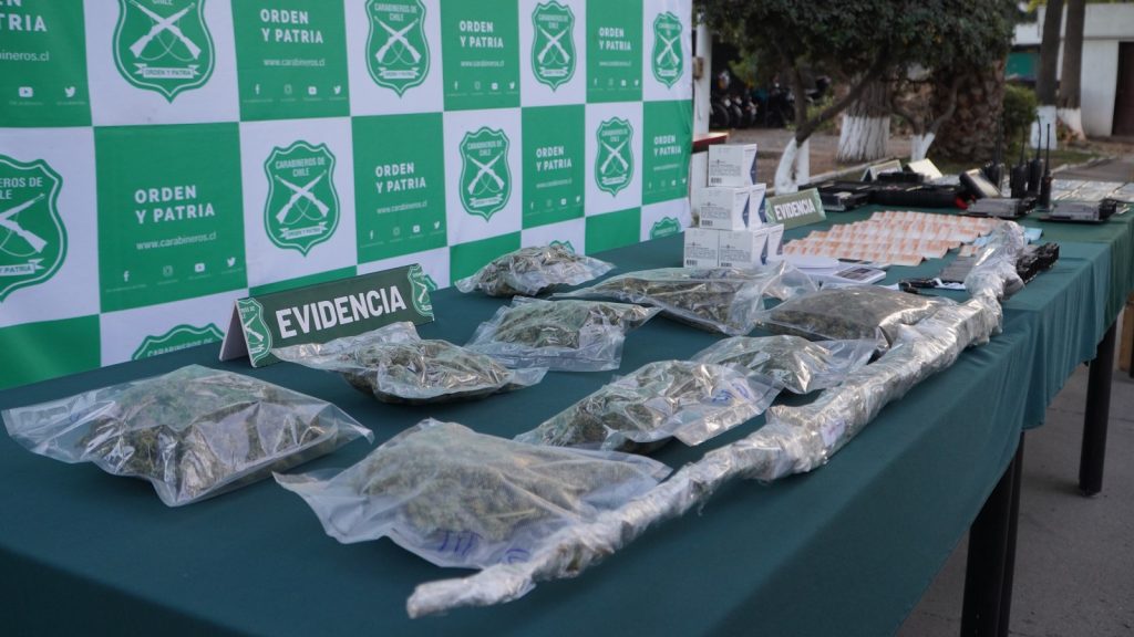 En el sitio también se incautó marihuana a granel, cuyo peso alcanzó 1 kilo 63 gramos, además de una planta de cannabis de 1,60 metros de altura. A esto se suman escáneres vehiculares, placas patentes artesanales, llaves falsas y una gran cantidad de cajas con medicamentos.