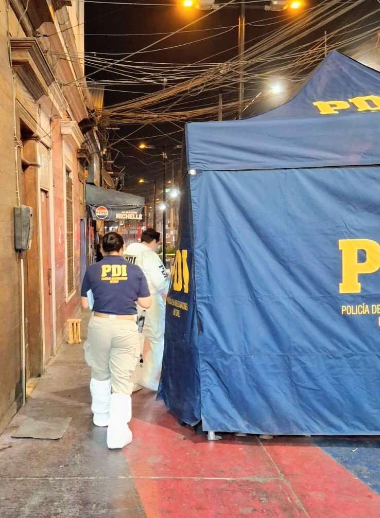 Detectives de la Brigada de Homicidios (BH) Iquique junto a peritos del Laboratorio de Criminalística, realizaron el trabajo de campo en las intersección de calles Tarapacá y Juan Martínez, lugar donde un hombre de 42 años, fue hallado sin vida.