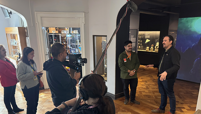 Durante su paso por el Museo Fonck, el equipo recorrió diversas áreas, conociendo en terreno el trabajo que se desarrolla día a día. La visita incluyó las exhibiciones, abordando el sector de Ciencias Naturales, donde destacó la colección de entomología, así como los espacios dedicados a los pueblos originarios, con especial énfasis en los contenidos de la cultura Rapa Nui, profundizando en su valor patrimonial y educativo.